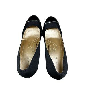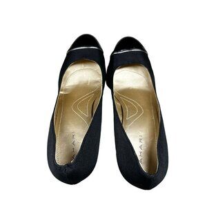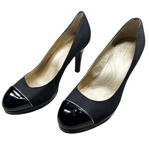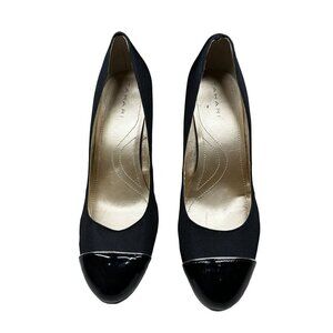 Tahari Black Heels Womens Size 8 Laurie Fabric Patent Leather Toe Pumps