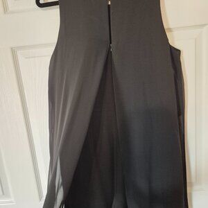 Beautiful Black jumpsuit size 12 - I am 5'9 and its a great length for wearing heels. Only wore once and is in great shape. Beautiful guilded collar with pearls. Flowing split overlay over the jumper so it hide any imperfections! Added some online pictures for reference on fake model! just for example. Jumpsuit is BLACK - my close up pictures make it look more gray but it is dark black.
