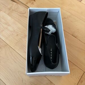Tahari Black Patent Ballet Flats Mary Janes Womens Size 8.5 New In Box Office. Shoes have never been worn and are new inbox with tissue paper. Perfect for dressing up outfits, business casual wear, office wear, and school. Flats have adjustable strap going across. Gothic. Smoke free home.