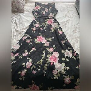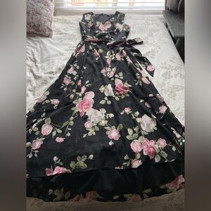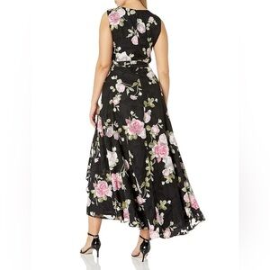 Tahari Black Pink Floral Embossed Wrap Maxi Dress 10 Wedding Guest Formal Event
