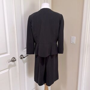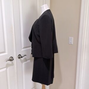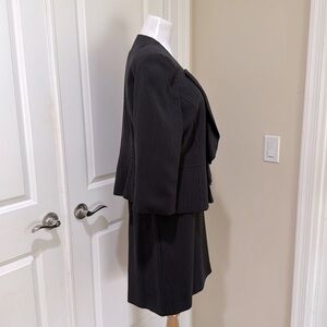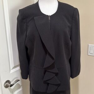 Tahari Black Pinstripe Ruffle Blazer and Skirt Two Piece Suit Set Size 16