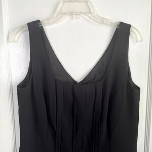 Tahari Black Pleated Sheath Dress Scoop Neck Sleeveless Professional Classic 10