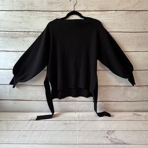 Tahari Black Puff Sleeve Sweater with Waist Tie - Size Medium Elegant Dressy