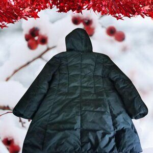 Stay warm in style with this elegant Tahari quilted coat. Designed for both comfort and sophistication, it features a flattering A-line silhouette, a cozy hood for added protection, and a smooth quilted exterior that locks in warmth without bulk. The mid-length design offers excellent coverage, making it perfect for chilly commutes or weekend outings.