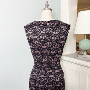 Tahari Black & Rose Gold Lace V Neck Sheath Dress 2 XS