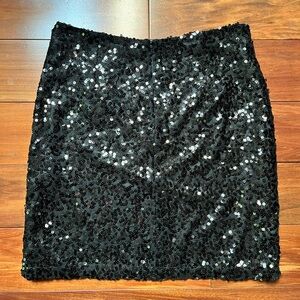 Elevate your evening ensemble with this Tahari black skirt, featuring a sleek pencil silhouette adorned with shimmering sequins. Perfect for cocktail parties or a night out, this skirt offers a glamorous touch with its reflective, all-over sequin design. NWT and no flaws.