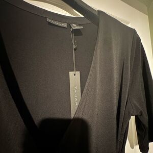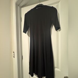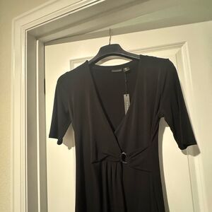 Tahari Black Sheath Midi Dress V-Neck Short Sleeve