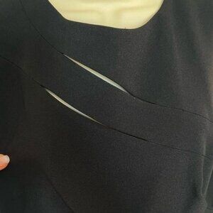 #tahari #blackdress #shiftdress #sleevelessdress #cutoutdress #rucheddress #backsplit #zipperclosure #polyesterdress #elastanefabric #womensfashion #size10 #workwear #partywear #officestyle #elegantedress #stylishdress #flatteringdress