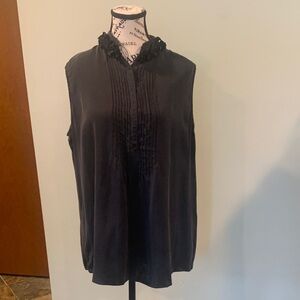 Tahari Black Sleeveless Silk Blouse Top Ruffle Neck Women’s Large