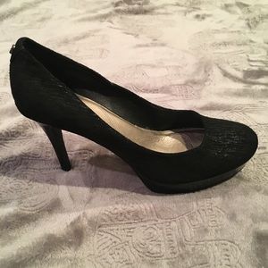 Subtle sparkle from silver details, very lightly worn. 3" heel. Comfortable and elegant!