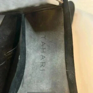 🖤🩶”Tahari” Black Suede Peep Toe Booties w/Snakeskin Print & Metallic Heel🖤🩶