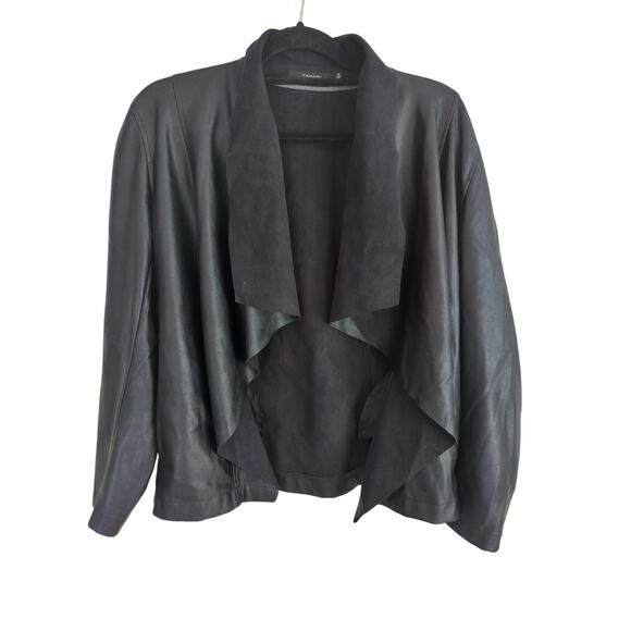 Tahari Black Vegan Leather/Suede Drape Jacket - Size M