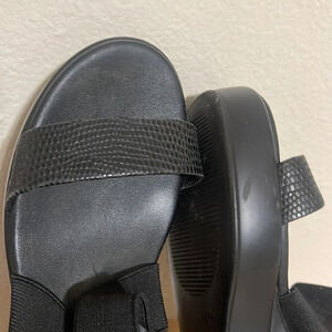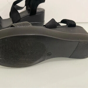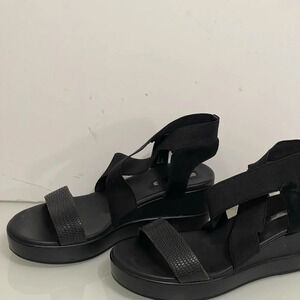 criss cross elastic ankle straps , Embossed toe strap. Man made and leather upper material
