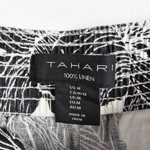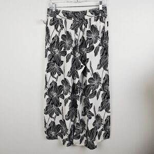 Tahari Black & White Floral Cropped Wide Leg Linen Pants NWT