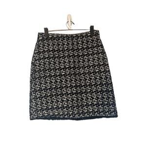 Tahari Black & White Print Tweed Cotton Blend Mini Pencil Skirt Women Sz 8