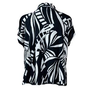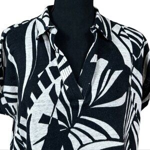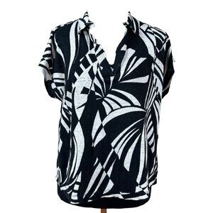 Tahari Black White Pullover Linen Short Sleeve Boxy Blouse Top Size XXL