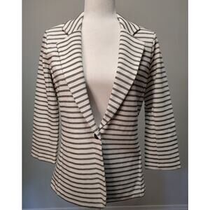 Tahari Black White Strip One Button Blazer Jacket Size Medium