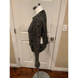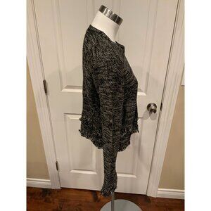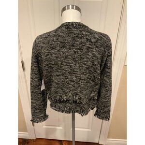 Tahari Black & White Tweed Long Sleeve Cardigan W/ Fringe Trim, Size M
