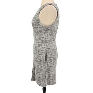 Tahari Black White Tweed Print Sleeveless Sheath Dress with Pockets Classic Fit
