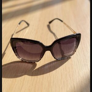 Chic Tahari sunglasses with a bold black frame and sleek gold accents. Perfect for a stylish look.