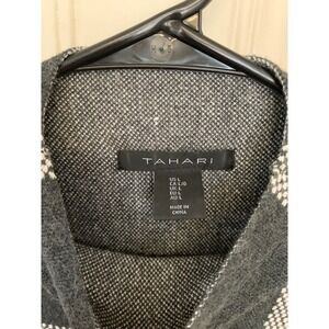 Tahari Black and Gray Plaid Tunic Top Women's Large 3/4 Sleeve
