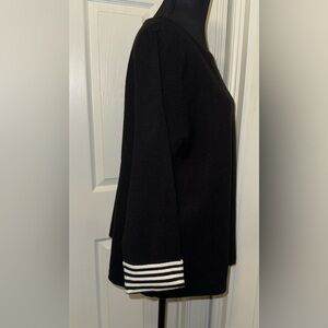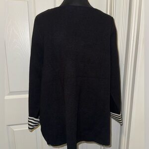 Tahari Black and White Crew Neck Sweater with Striped Cuffs