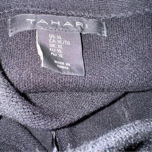 Experience the perfect blend of style and comfort with this Tahari sweater, featuring a classic crew neckline and a relaxed fit. The solid black body is complemented by striking black and white striped cuffs, adding a touch of elegance to your wardrobe. Crafted from a smooth knit material, this sweater is ideal for both casual and sophisticated occasions.