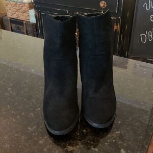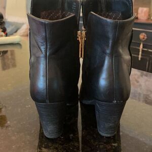 Tahari Black Leather Gold Zips Booties 10M EUC
