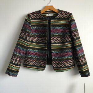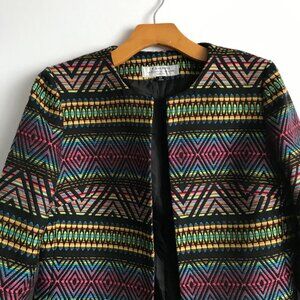 Tahari Blazer Jacket Chevron Stripe Collarless Womens 6