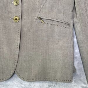 Tahari Blazer Womens 4 Tan 3 Button Closure Zipper Pockets Brown Stitching Lined