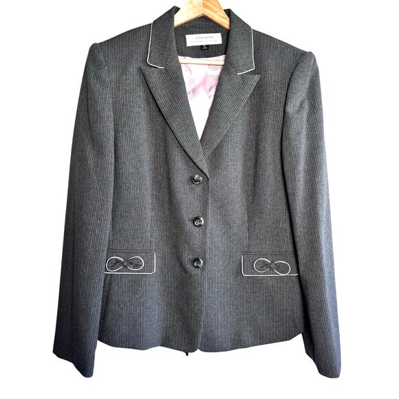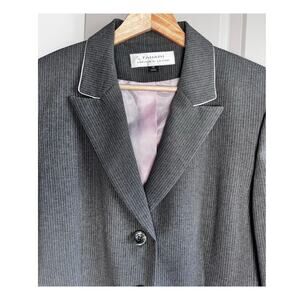 Tahari Blazer Women’s Size 12 Gray Pink Pinstripe Shoulder Pads Career Jacket