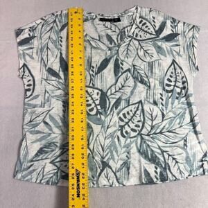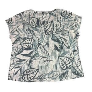 Tahari Blouse Top Womens Medium Palm Green 100% Linen Relaxed Boxy Lightweight