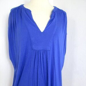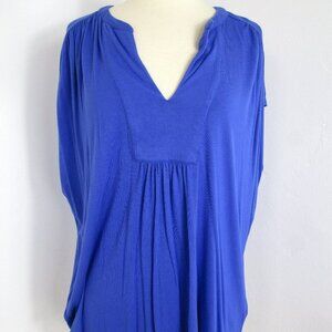 Tahari Blouse Top Women's Size XL Blue Sleeveless V-Neck Rayon Pleated Pullover.