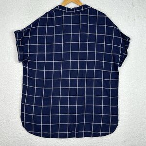 Tahari Blouse Womens 1X Navy White Windowpane Linen Blend Tunic Top Coastal