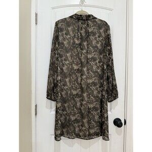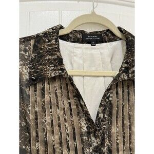Tahari Blouson Shirt Dress Knee Length Sz 14 Brown Black Chiffon Career L/S a