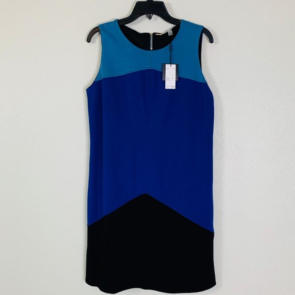 Tahari Blue Color Block Sleeveless Dress - Size 6. NWT. Pretty blues. HIgh neckline. Conservative enough for the office.