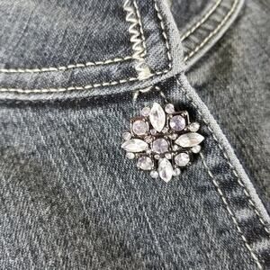 Tahari Blue Denim Vintage Jean Jacket Rhinestone Flower Snaps Excellent M