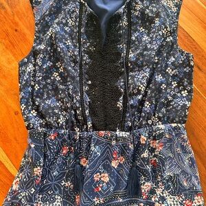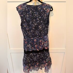 Elegant blue dress with floral design. Ideal for versatile wear.
