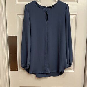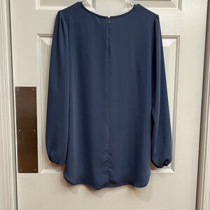 Tahari Blue Oversized Keyhole Tunic Top Zip Back Elastic Cuff ~ Women’s Size M