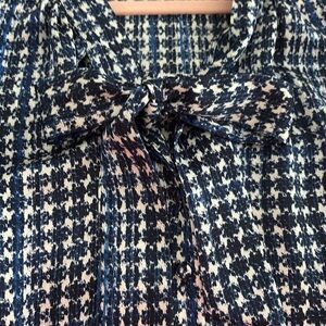 Tahari Blue & White Patterned Sleeveless Buttoned Blouse w/Tie in Front. Size 1X