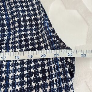 Tahari Blue & White Patterned Sleeveless Buttoned Blouse w/Tie in Front. Size 1X (Plus Size) Elevate your wardrobe with this chic blue and white patterned blouse. Perfect for any occasion, this stylish piece offers both comfort and elegance.