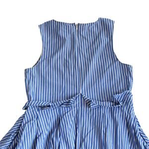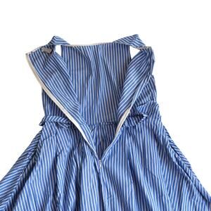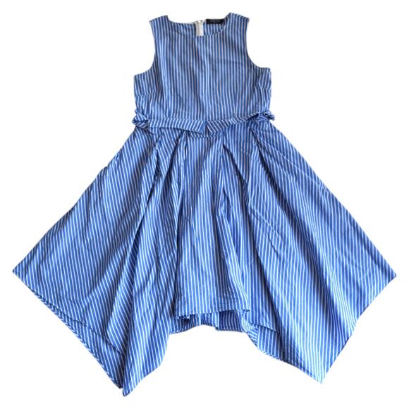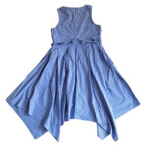 Tahari Blue & White Pinstripe Handkerchief Hem Sleeveless Dress Petite Large