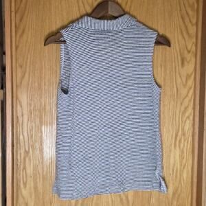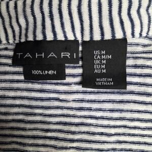 Tahari Blue and White Striped Linen Sleeveless Top Size Medium