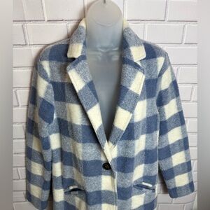 Tahari Blue and White Teddy wool Jacket with Classic Check Pattern/S