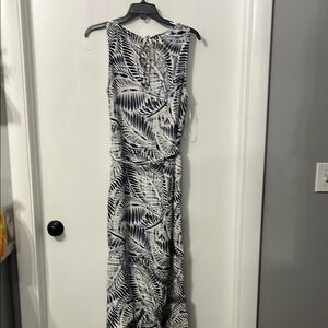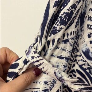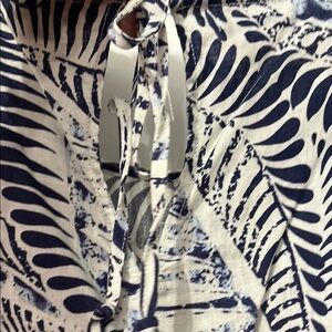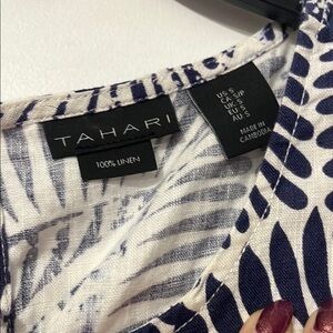 Tahari Blue and White Tropical Leaf Print Sleeveless Linen Dress Small
