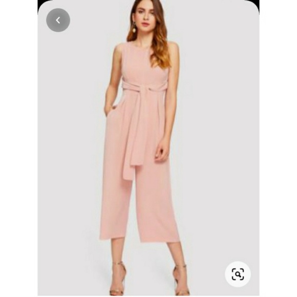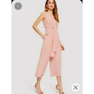 Tahari Blush Pink Self Tie Sleeveless Jumpsuit