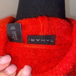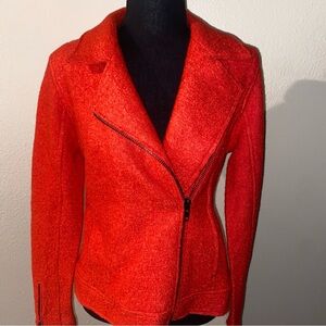 Tahari Boiled Wool Red Biker Jacker Sz Small Boucle Bright Red
