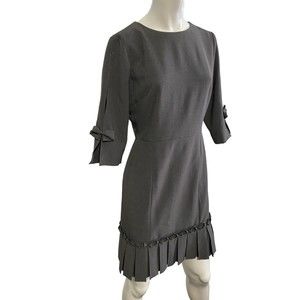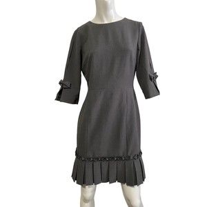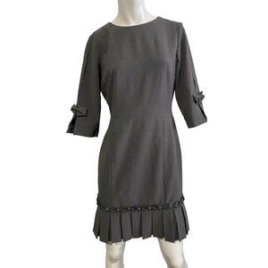 Tahari Bow & Pleated Crepe Sheath Dress by Arthur S. Levine ASL Gray 4P