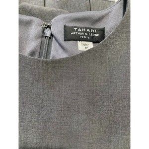 Elevate your business attire with this stunning Tahari sheath dress by Arthur S. Levine ASL worn by Kathie Lee Gifford. The gray crepe dress features a pleated accent and a charming bows, adding a touch of playfulness to the classic design.
