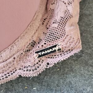 The Tahari Bra in size 36B is a classic brown padded underwire bra with an adjustable clasp back. It features a solid pattern, bra strap style, and a hook & eye closure. Made from polyamide blended fabric, this push up bra from the Tahari product line offers comfort and support with a touch of Victoria-style elegance. Easy to care for with machine washable instructions, this bra is perfect for everyday wear or special occasions.